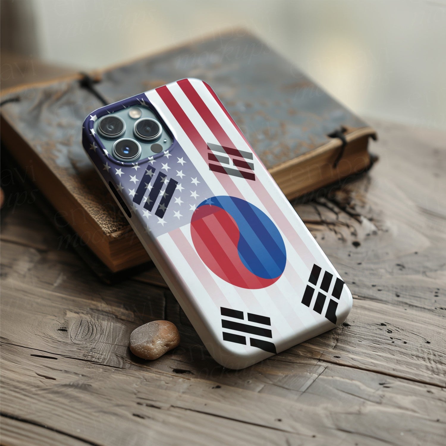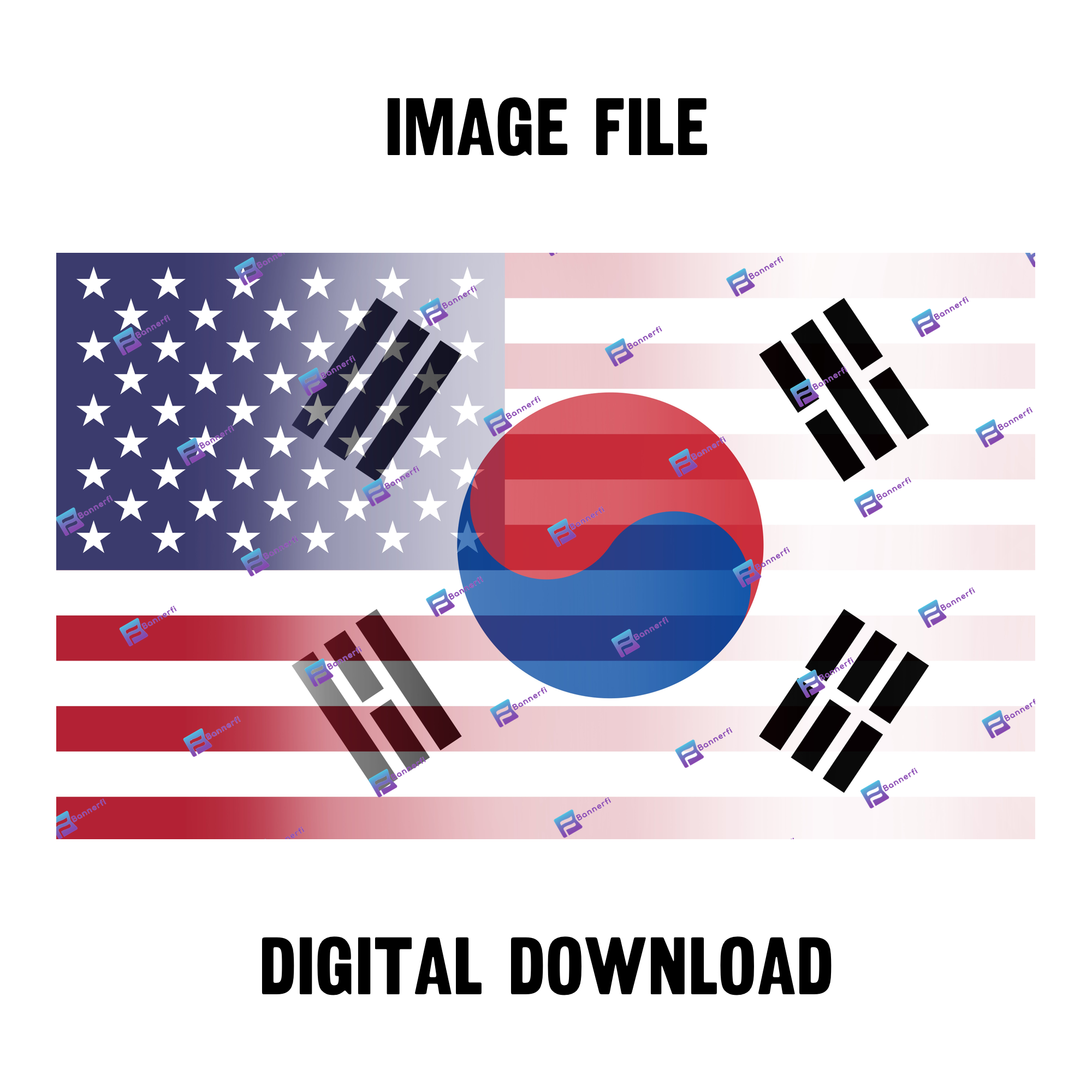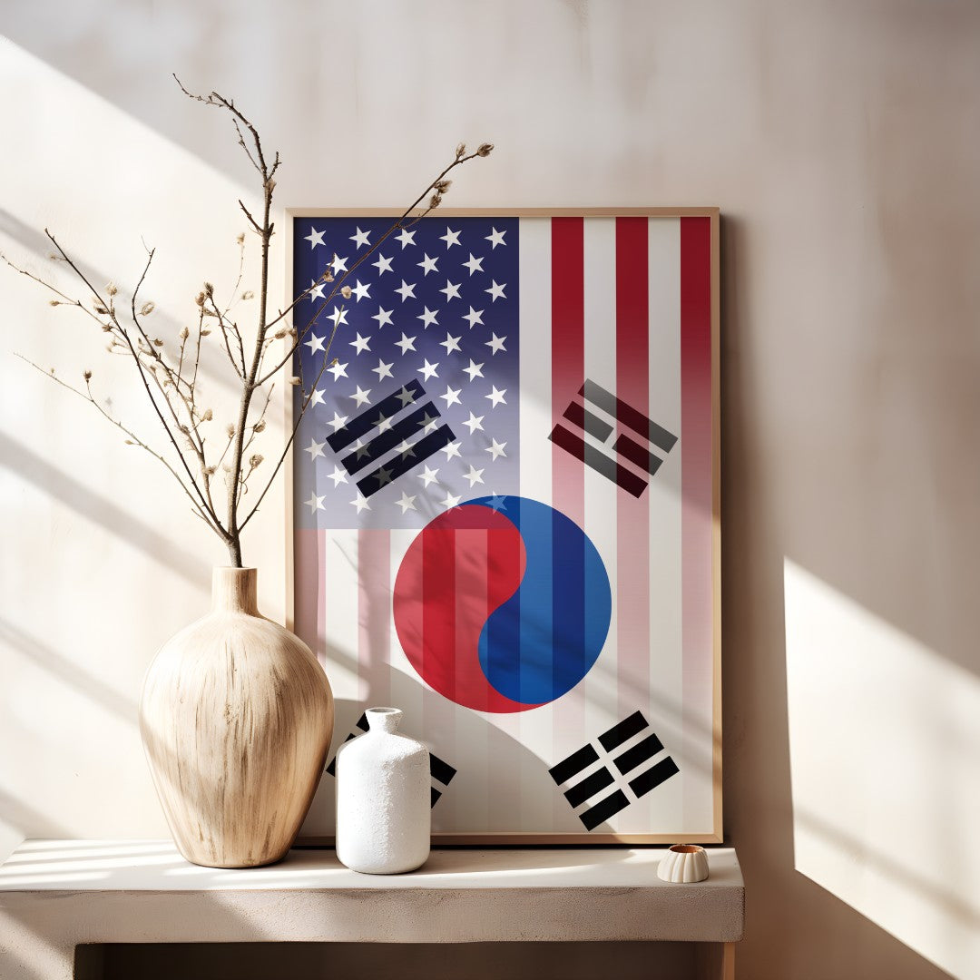 - Single cohesive design: A unified composition that harmoniously combines elements of the US flag and the South Korean flag in one artwork.