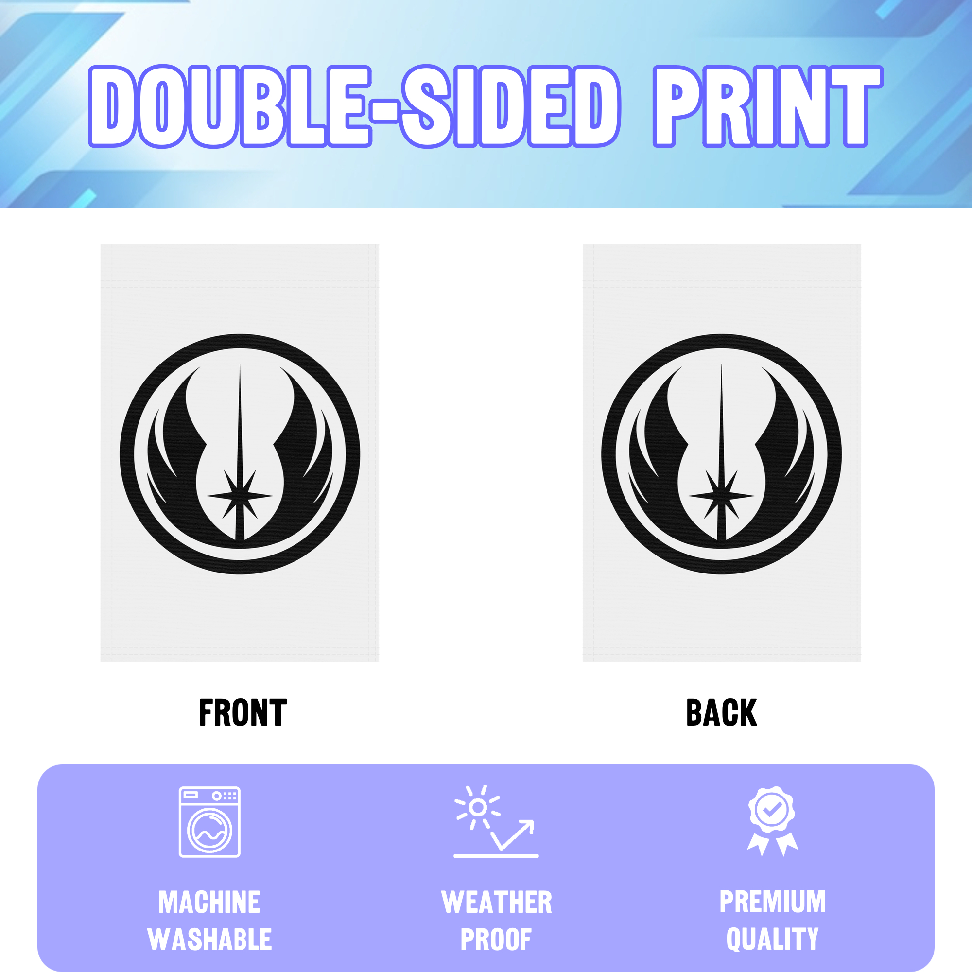 - Design: White garden flag featuring a bold black Jedi emblem visible from both sides