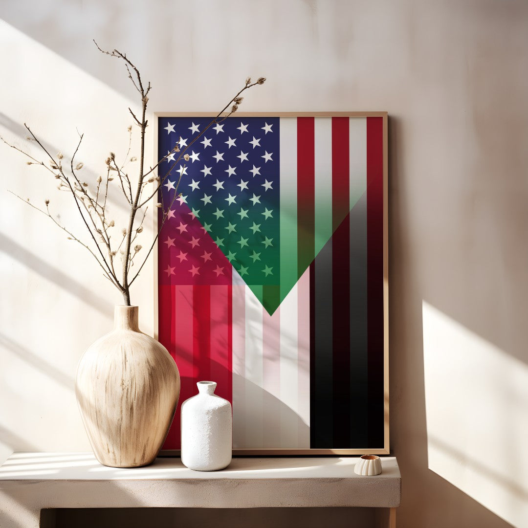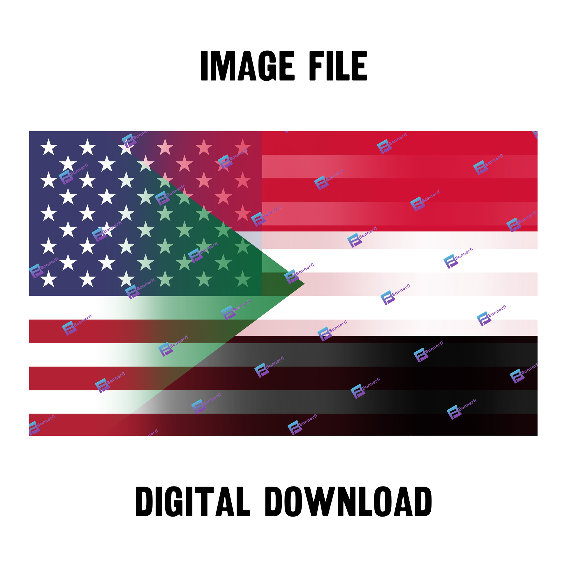 Celebrate dual heritage with a striking digital artwork that fuses the United States flag with the Sudanese flag motif. Perfect for posters, prints, social graphics, and home décor, this high-resolution file is instantly downloadable from Bannerfi.