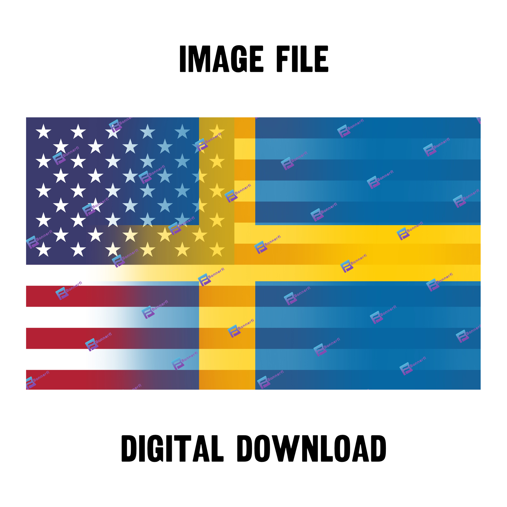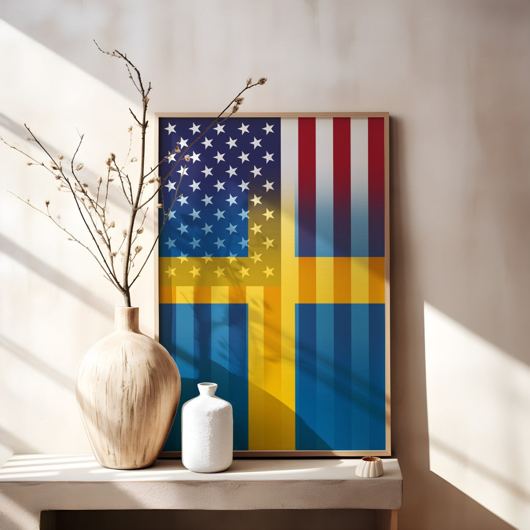 Enhance your collection with this unique Swedish American Flag Design, a product from Bannerfi that fits seamlessly into the Digital Artwork category for your creative needs.