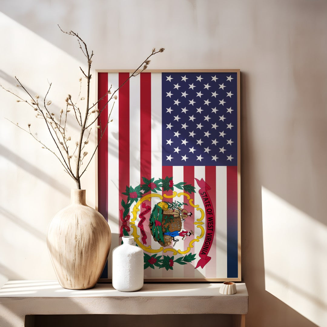 Introducing a bold digital artwork that fuses the U.S. Stars & Stripes with the West Virginia state flag. Designed for patriots, creators, and designers, this high-quality file is ready to elevate posters, apparel prints, banners, hats, and more.