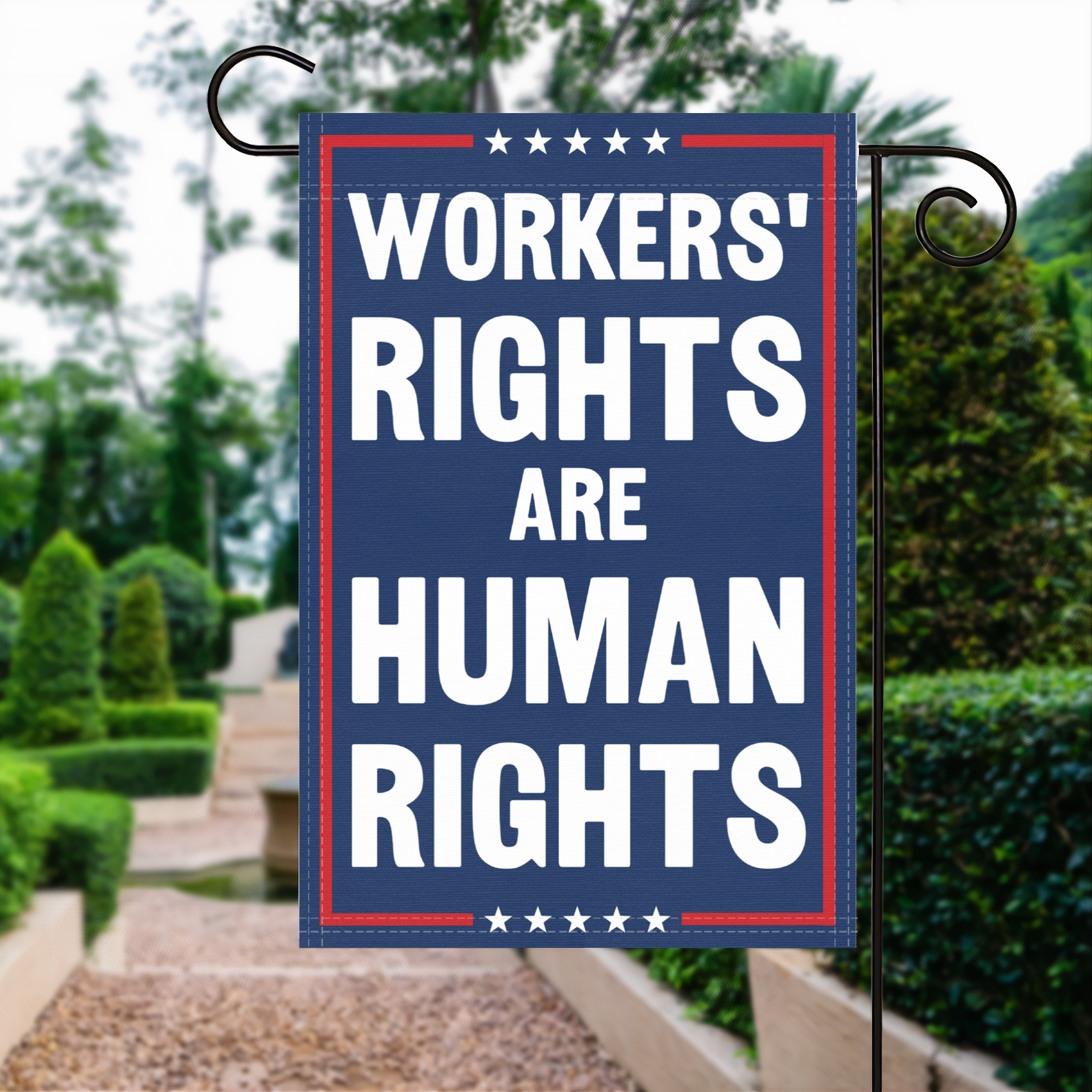 Display your convictions with clarity using the Workers Rights Are Human Rights Garden Flag from Bannerfi. Designed for outdoor spaces, this 12x18-inch flag is perfect for yards, gardens, patios, or any area where you want to make a statement.